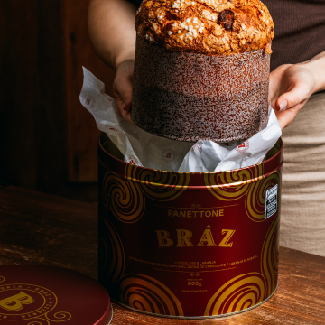 Caixa com 6 unidades do Panettone artesanal Bráz, com 10% off.