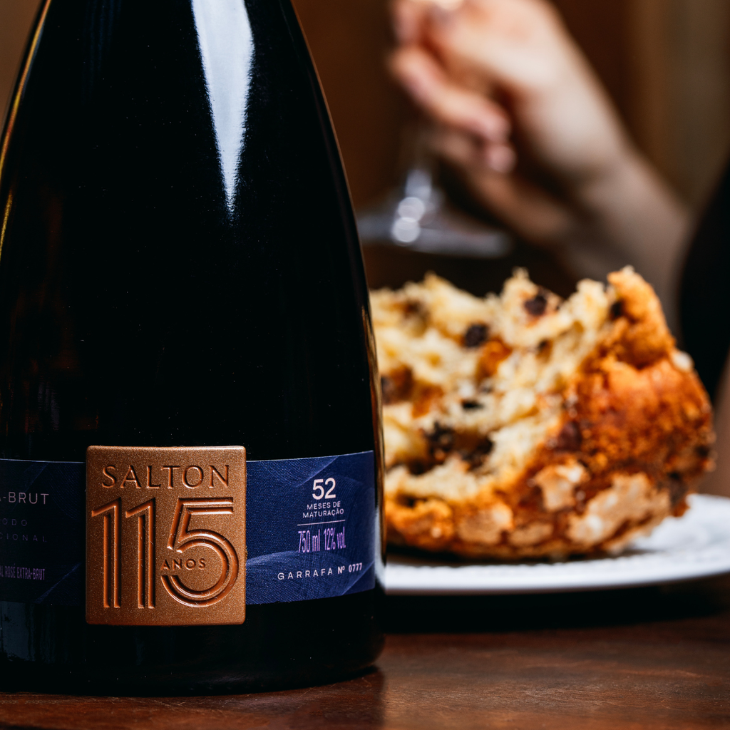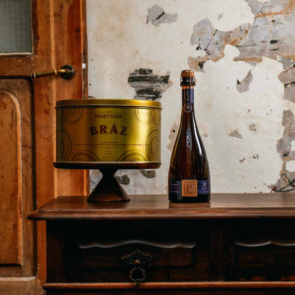 Neste Natal, nos unimos à Salton para brindar um kit muito especial: de um lado, temos o tradicional Panettone Bráz; do outro, o Espumante Salton 115 anos, uma edição exclusiva e numerada.